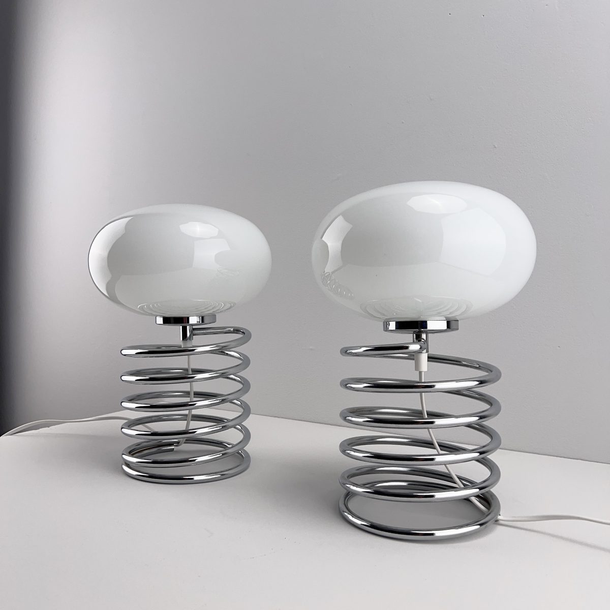 2er Set weiße Tischleuchten Artemide Eclisse, Design: Vico Magistretti